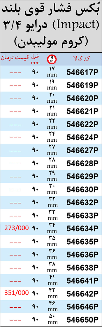 لیست قیمت بکس فشارقوی بلند 3/4 درایو
