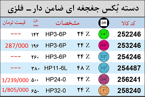 لیست قیمت دسته بکس جغجغه ای ضامن دار