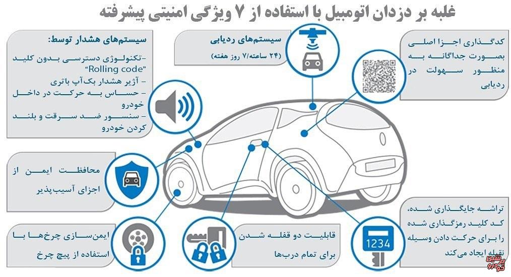 جالب است بدانیم، در حال حاضر تکنولوژیهای زیادی برای ایمنتر شدن خودرو وجود دارد که برخی از آنها در تصویر زیر با عنوان 7 ویژگی امنیتی برای غلبه بر دزدان خودرو نشان داده شده است.